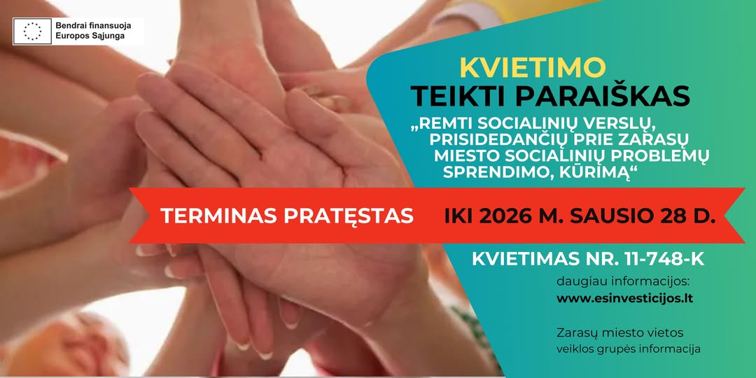 Informuojame, kad iki sausio 28 d. pratęstas kvietimas teikti projektų įgyvendinimo planus pagal Zarasų miesto vietos plėtros strategijoje 2023-2029 m. numatytą 1.2.1. veiksmą „Remti socialinių verslų, prisidedančių prie Zarasų miesto socialinių problemų sprendimo, kūrimą“. Kvietimas parengtas vadovaujantis Lietuvos Respublikos Vidaus reikalų ministro 2022 m. rugpjūčio 17 d. įsakymu Nr. 1V-536 Dėl 2022-2030 metų viešojo valdymo plėtros programos pažangos priemonės Nr. 01-004-08-04-01 „Didinti visuomenės įsitraukimą į vietos problemų sprendimą“ patvirtintu aprašu.