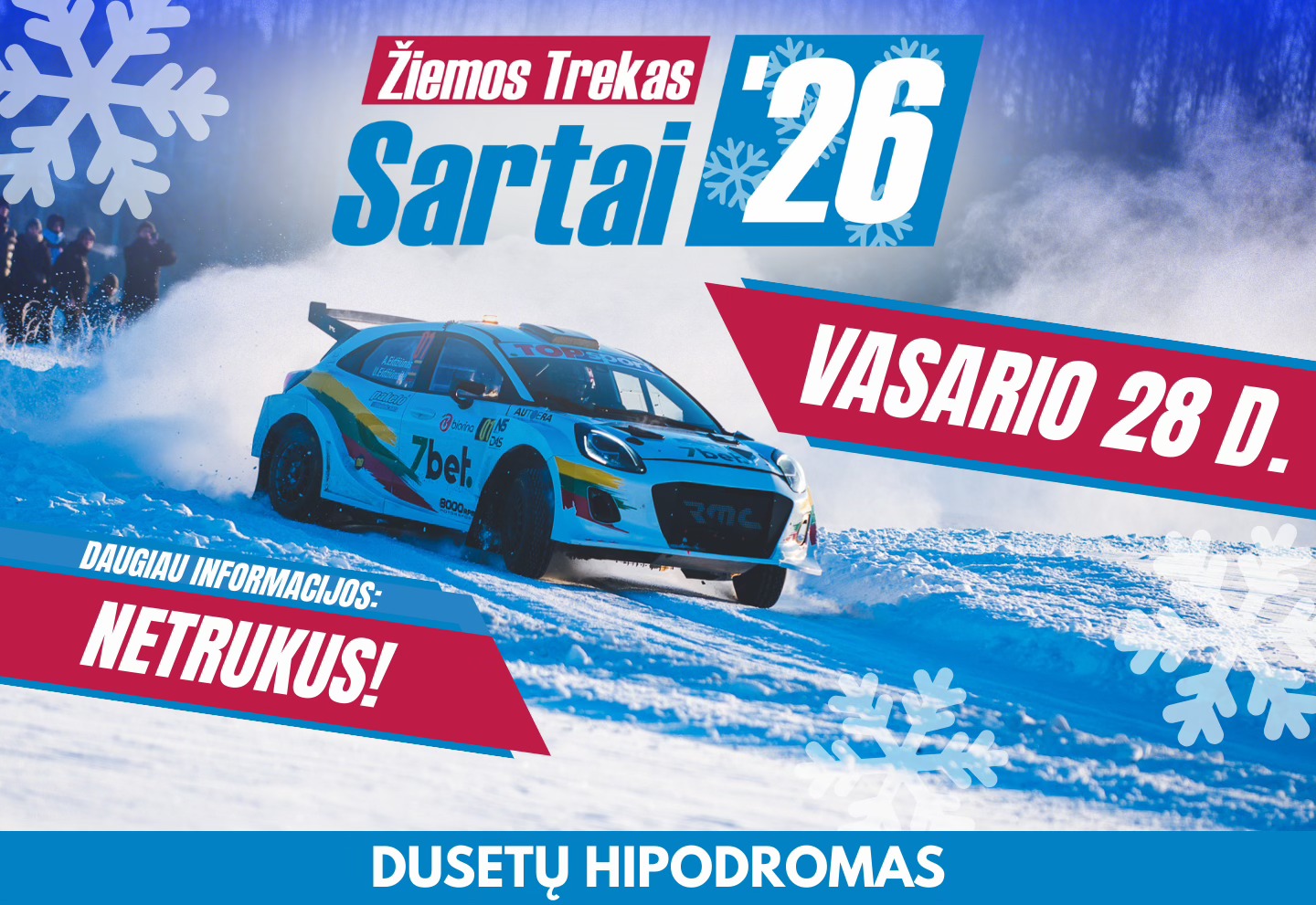 Sartų ežeras garsėja lenktyninių ristūnų žiemos lenktynėmis, tačiau 2026 m. vasario 28 d., paskutinį vasario šeštadienį, ežero pakrantėje įsikūrusiame Dusetų hipodrome riaumos automobiliai. Po beveik dešimtmetį trukusios pertraukos į šį regioną grįžta automobilių treko ant ledo lenktynės „Sartai 2026“, suteiksiančios nepaprastų emocijų tiek dalyviams, tiek žiūrovams.