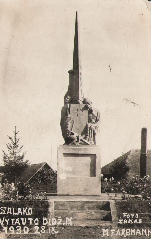 Nepriklausomybės paminklas pastatytas 1930 metais, minint Vytauto Didžiojo 500 metų mirties jubiliejų. Paminklą sukūrė ir pastatė Iš Salako kilęs ir XX amžiaus pradžioje Europoje išgarsėjęs žydų skulptorius Maksas Farbmanas (1886-1950). Lėšas paminklo statybai skyrė tuo metu Salake dirbęs vaistininkas Mačius.