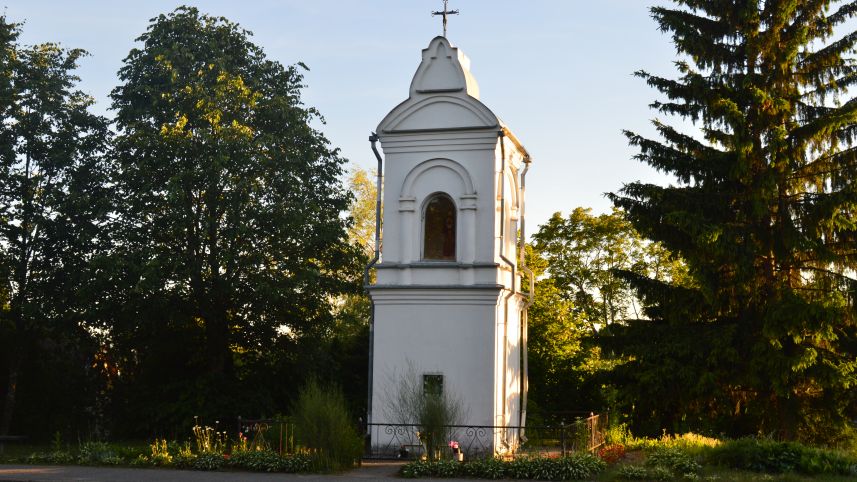 1824 m. koplytėlę iš naujo pastatė Antanas Zarenbergas. Ji buvo iš plytų, tinkuota ir baltai nudažyta. Viršuje, po stogeliu, buvo nedidelė arkos formos anga, kurioje stovėjo Kristaus statulėlė. Žmonės šią statulėlę laikė stebuklinga. Apie koplytėlės atsiradimą sklando įvairių pasakojimų. Pasakojama, kad vieną audringą dieną žaibas trenkęs į bažnyčią, ir ji buvusi nuversta į ežerą. Šalia bažnyčios stovėjusi bei stebuklingos galios turėjusi Kristaus statulėlė išplaukė į vandens paviršių. Toje vietoje, prie Šaltupės upelio, parapijiečiai pastatė mūrinę koplytėlę, į kurią perkėlė minėtą statulėlę.