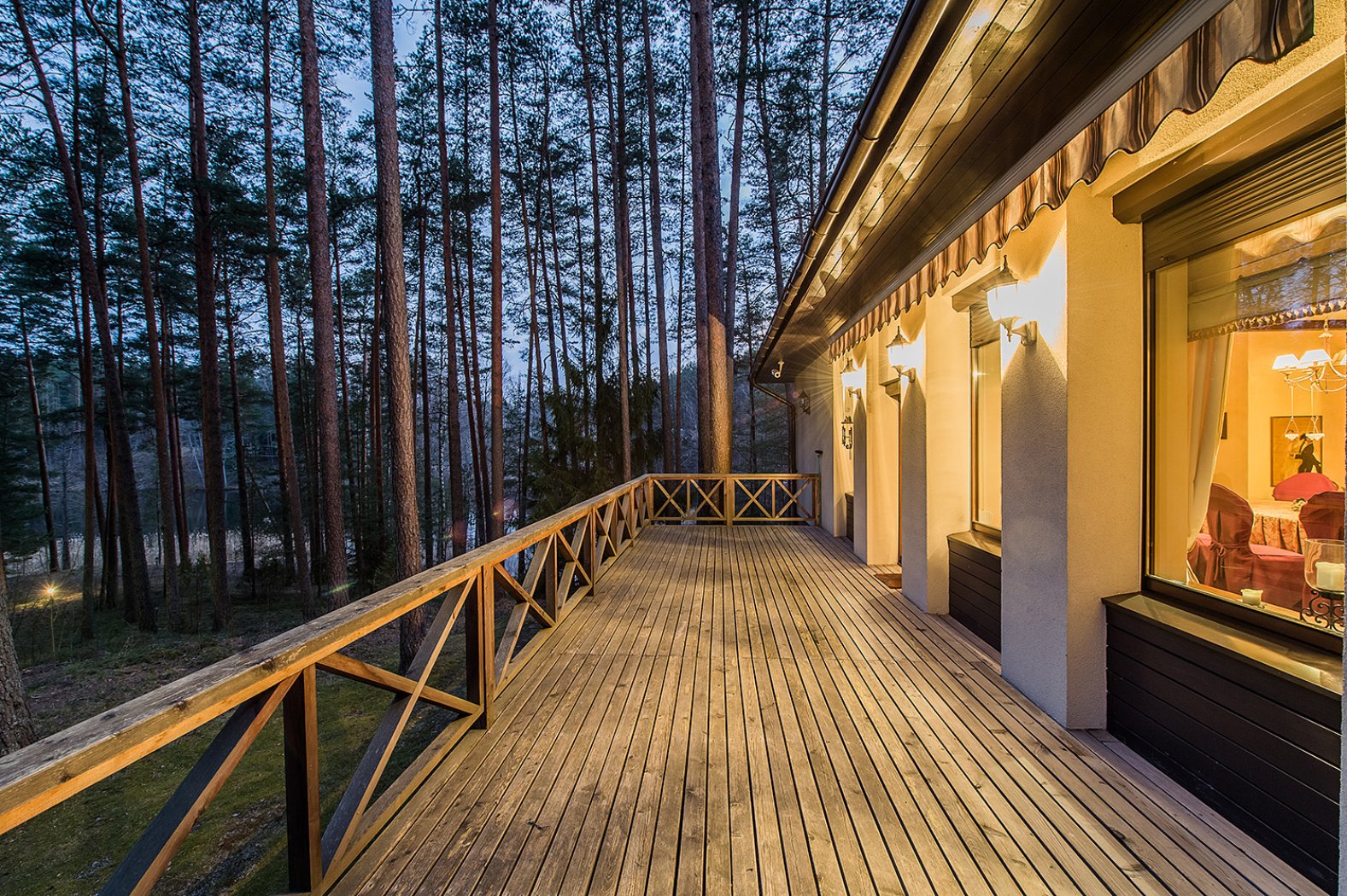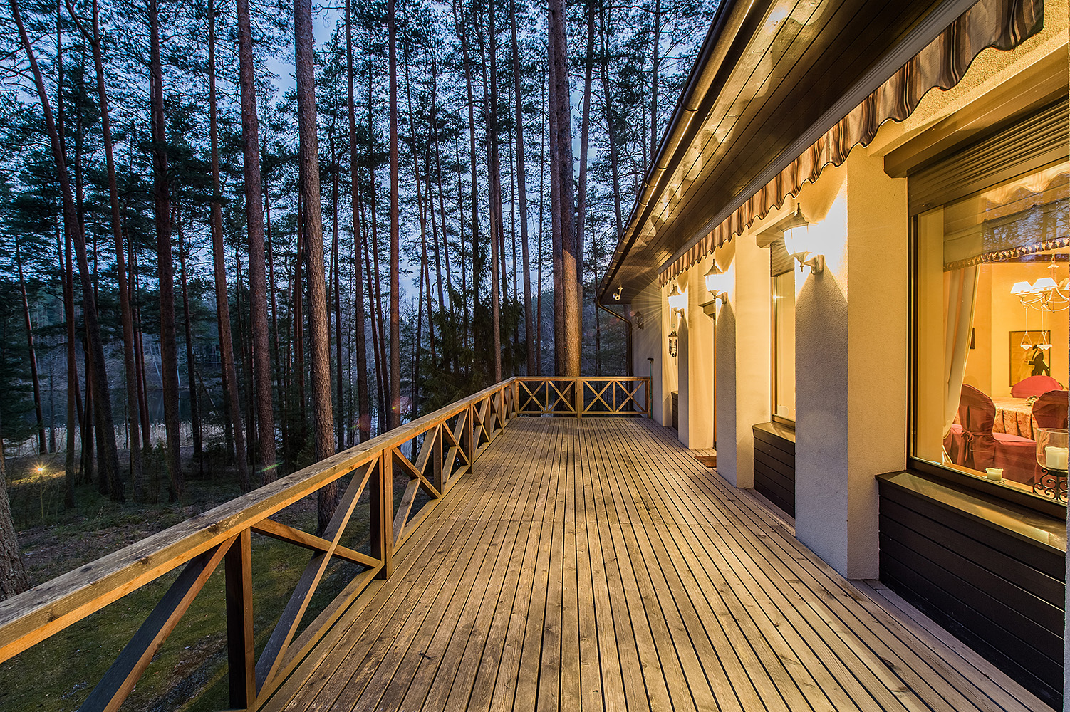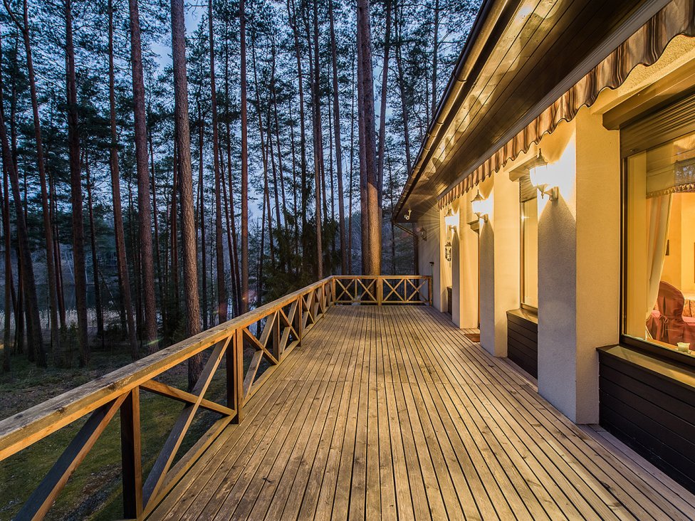 Iš valgomojo zonos patenkama į didžiulę terasą su aukštų pušų juosta bei vaizdu į Antalieptės Marias. Terasa kviečia jaukiai įsitaisius skaityti knygą, mėgautis saulės voniomis, o šiltais vasaros vakarais pasilepinti vakariene lauke.