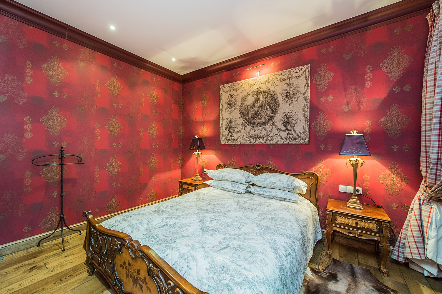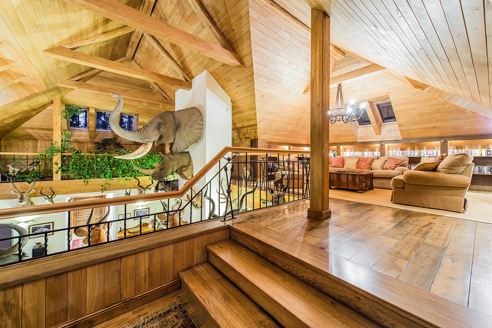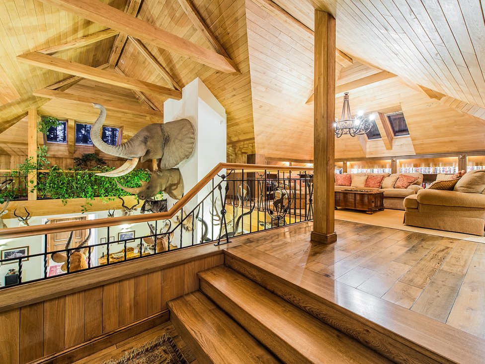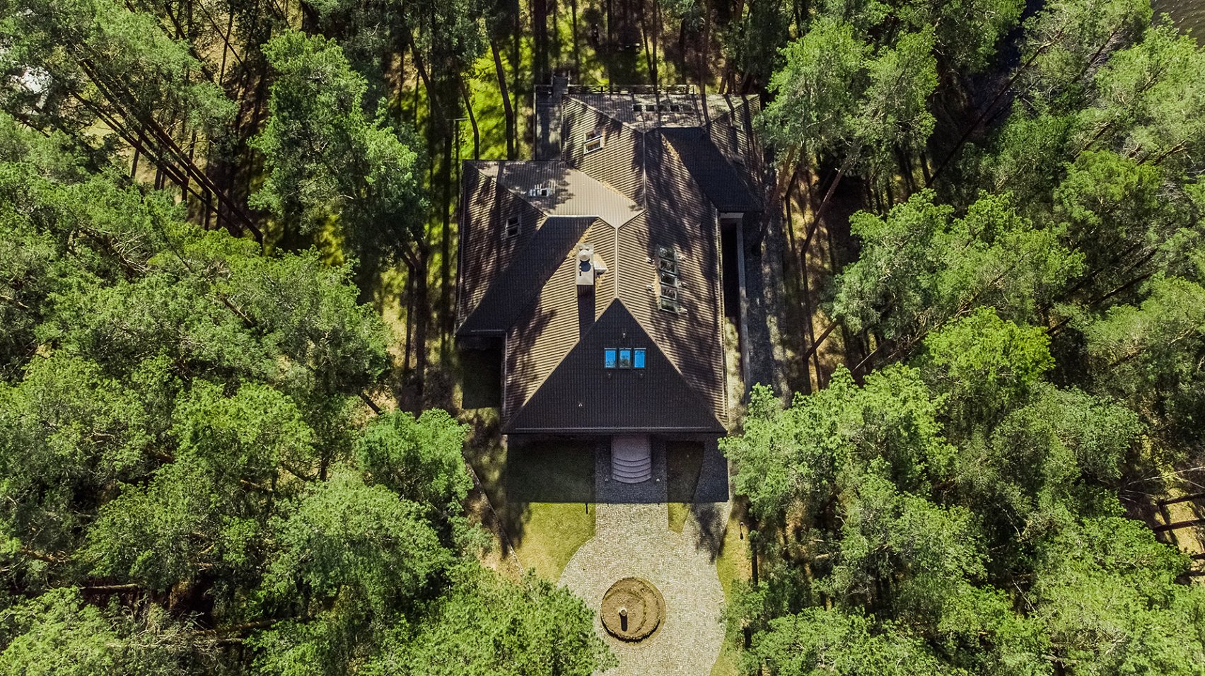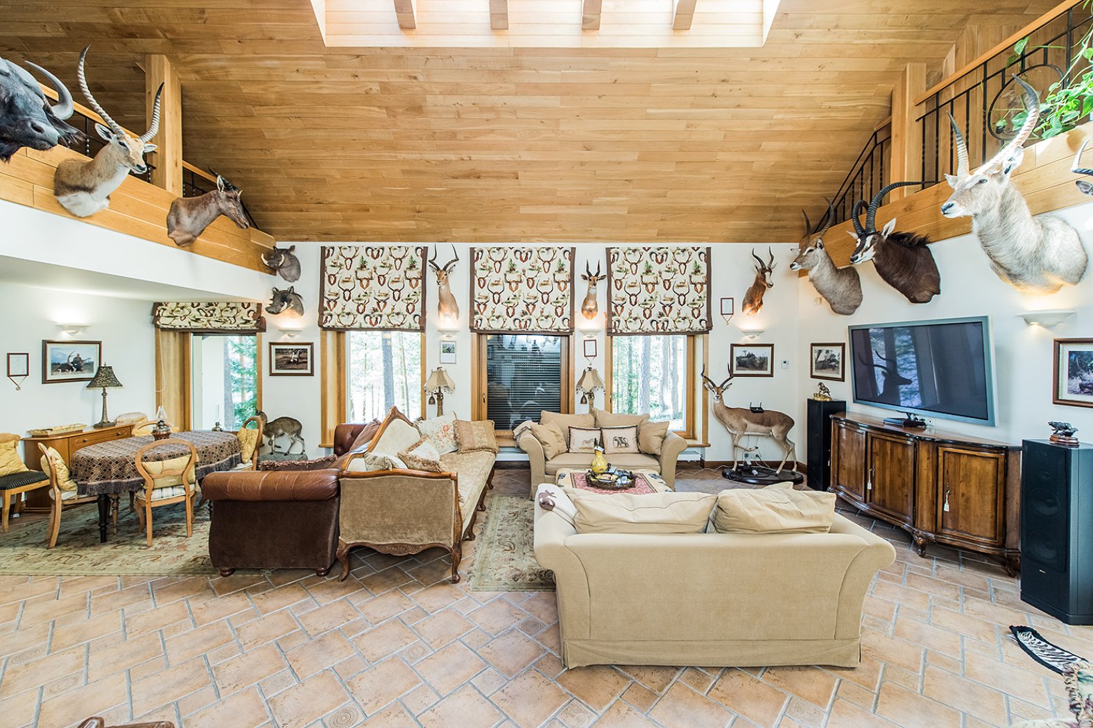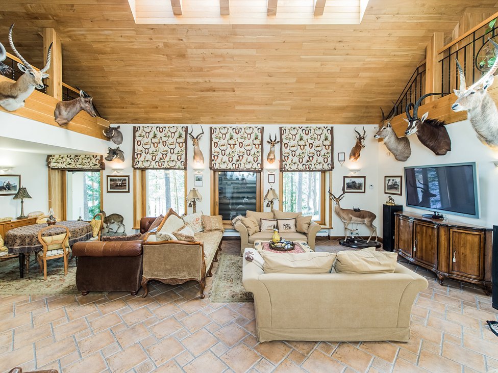 Viloje yra 5 miegamieji, 4 vonios kambariai ir kiekvienas jų atspindi savo unikalią interjero tematiką. Pro kambarių langus šviečia raminantys vaizdai į ežerą ar mišką. Pirmame aukšte taip pat yra didžiulė svetainė su įspūdingais medžioklės trofėjais bei erdvi valgomojo zona, talpinanti net 12 asmenų.