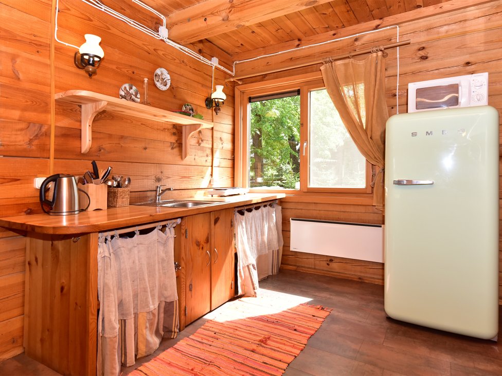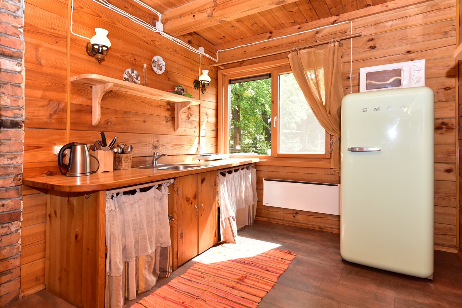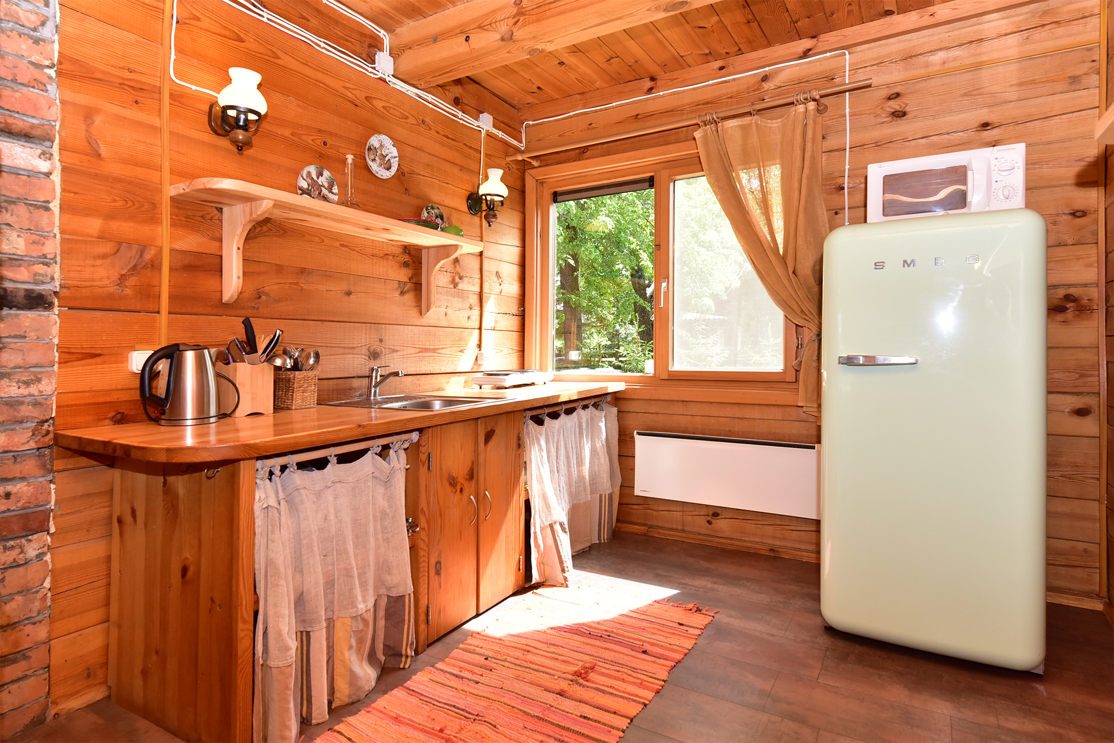 - 8 vietų rąstinis namas su kubilu (2 miegamieji kambariai, 80 m²).