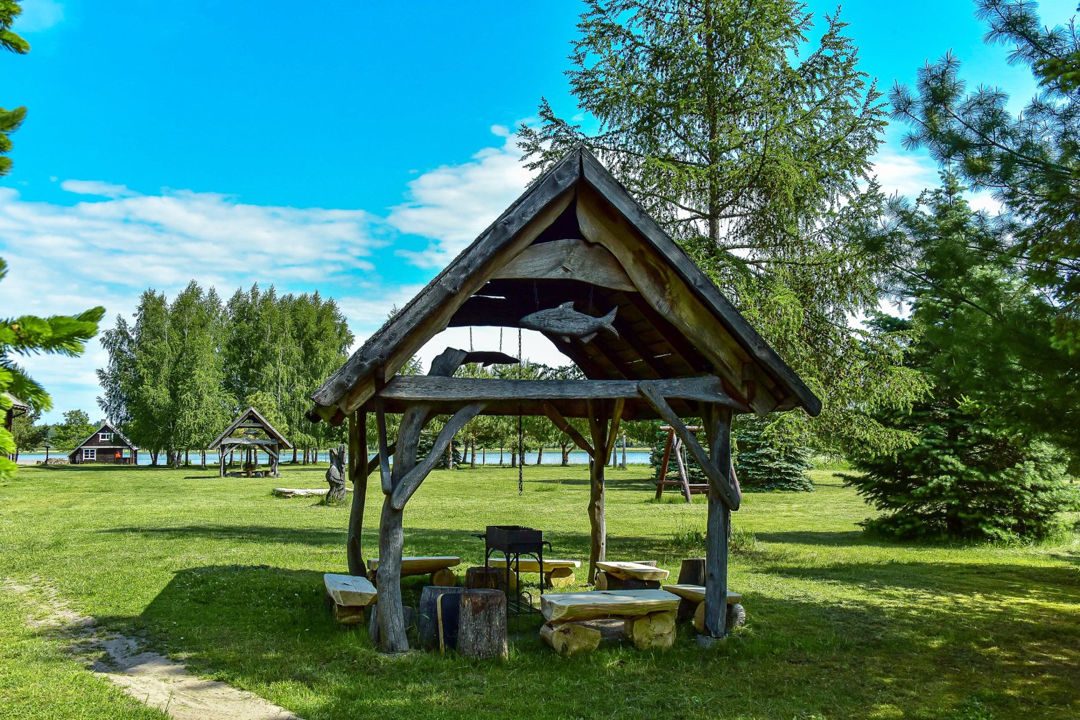 - Pavėsinės su apšvietimu ir didelėmis kepsninėmis (ketiniai puodai, iešmai, grotelės).