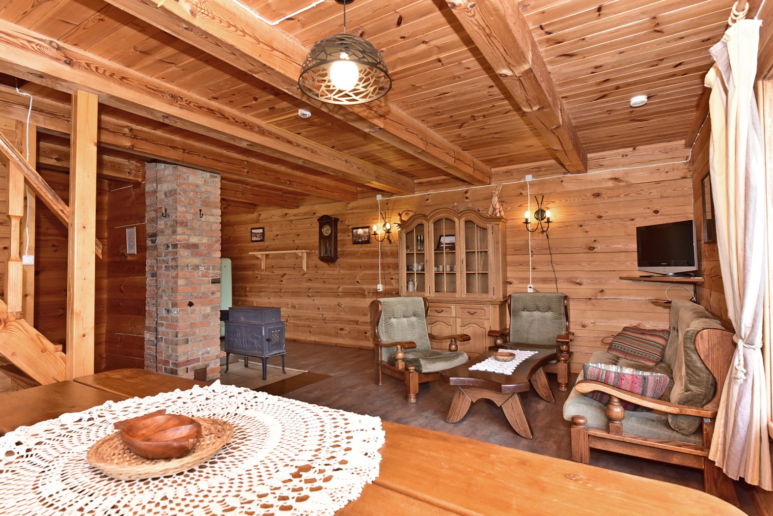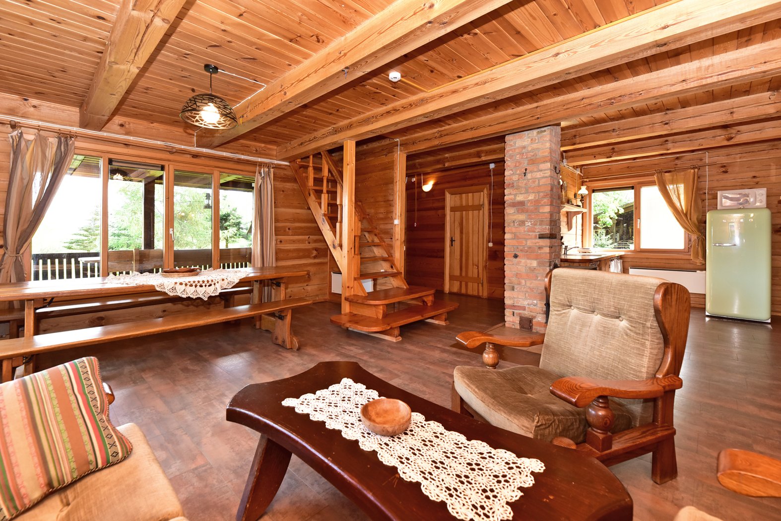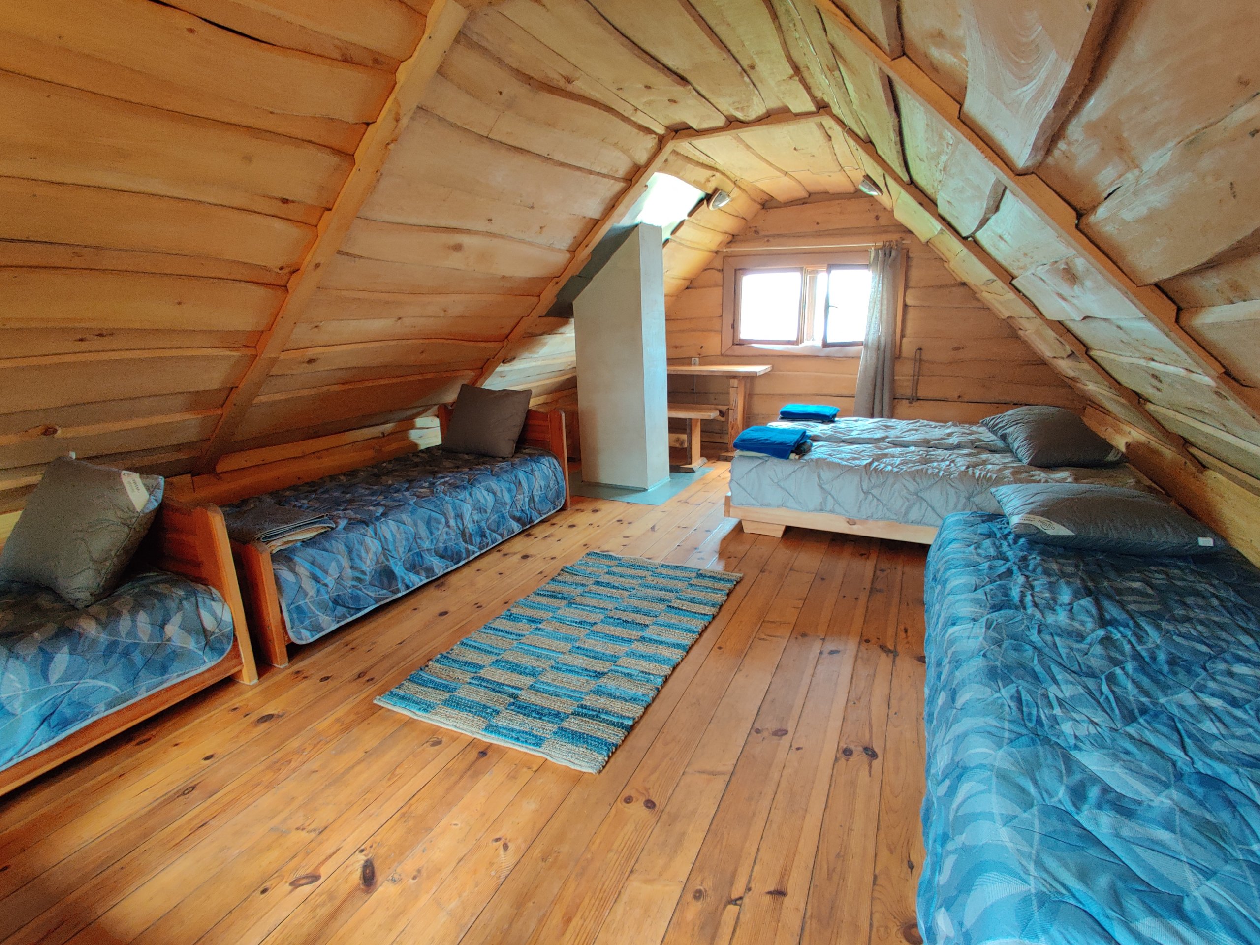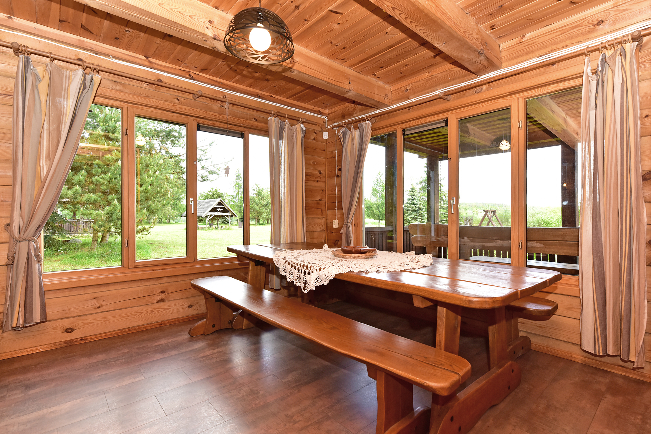 - 12 vietų rąstinis namas su kubilu (4 miegamieji kambariai, 100 m²).