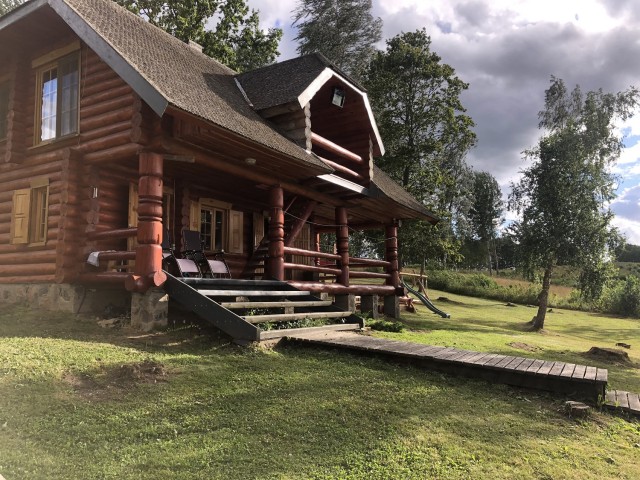 Namelyje yra didelė terasa, kambarys su židiniu ir virtuve, 4 miegamieji kambariai viršuje, pirtis, dušo kabina, 2 WC kambariai, TV, WiFi, indukcinė kaitlentė, priešgaisrinė ir greito reagavimo apsauga.