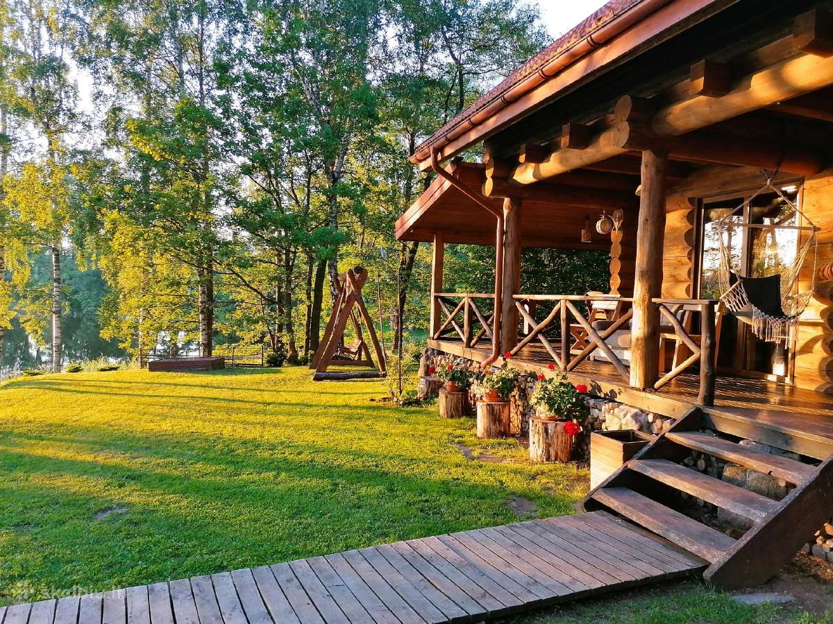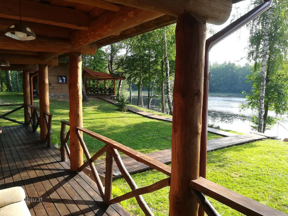 - Pirtis ir terasos su vaizdu į ežerą: sodyboje įrengta erdvi pirtis su didele terasa, iš kurios atsiveria kvapą gniaužiantys vaizdai į ežero platybes – tai puiki vieta atsipalaiduoti ir mėgautis grynu oru.