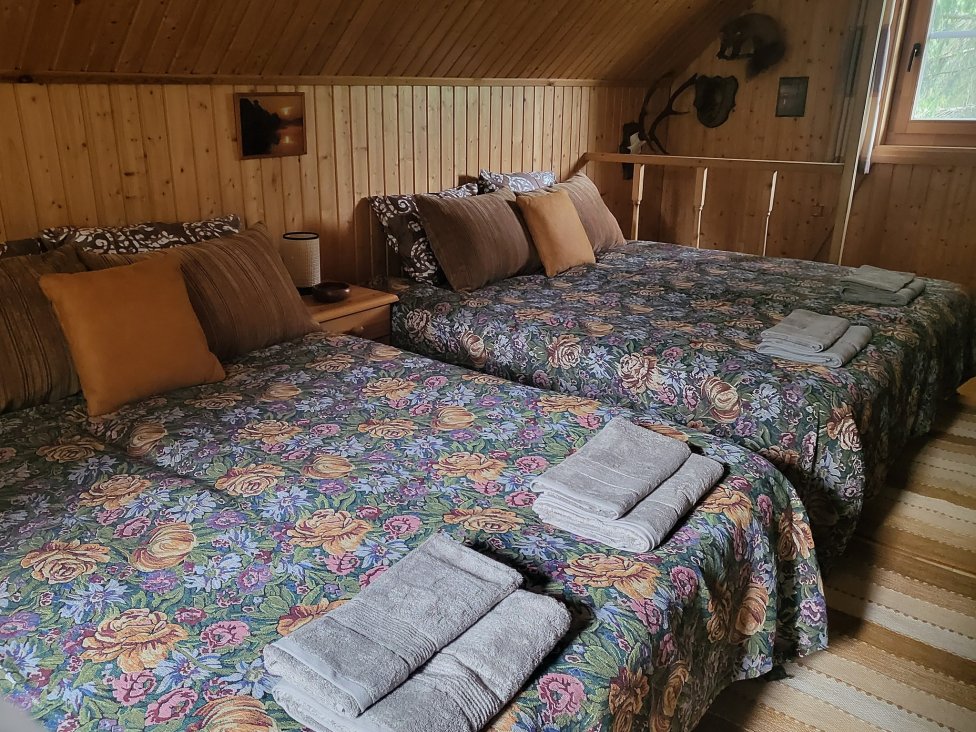 - 11 miegamųjų vietų su patalynės užvalkalai, rankšluosčių komplektais (8 iš jų antrame aukšte, 3 pirmame). Yra galimybės pristatyti kūdikio lovelę.