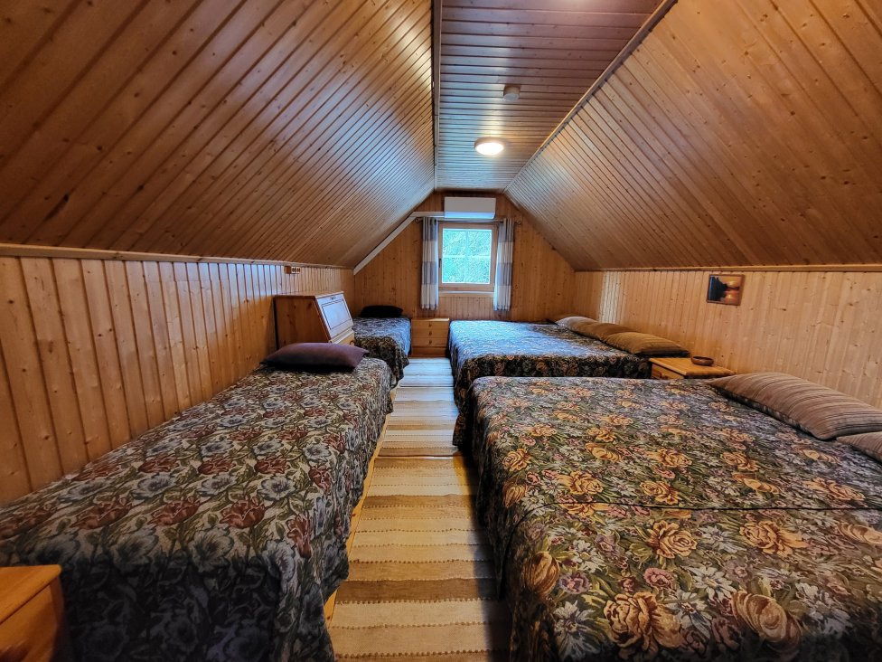 - antrame aukšte vienas kambarys miegui (8 gulimos vietos) ir poilsiui su televizoriumi, radijo/CD grotuvu;