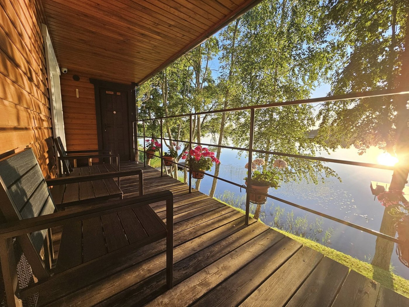 - terasoje rasite du medinius fotelius ir stalelį su nuostabiu vaizdu į ežerą;