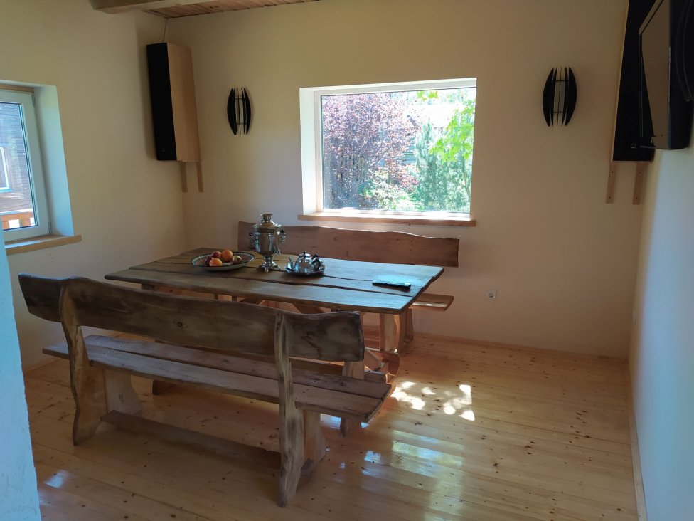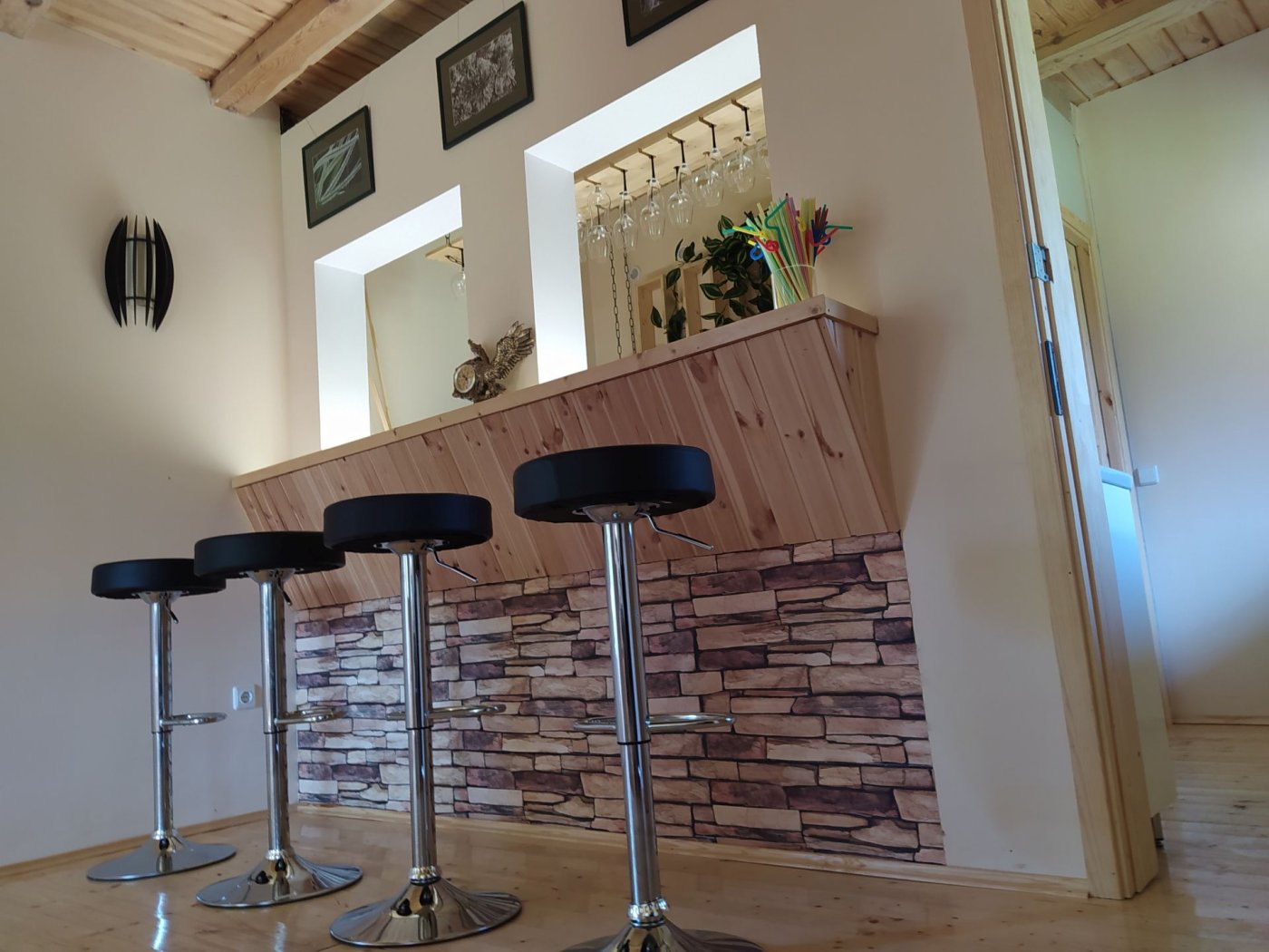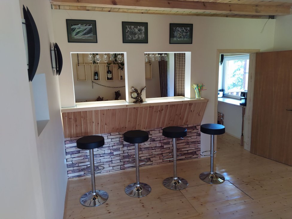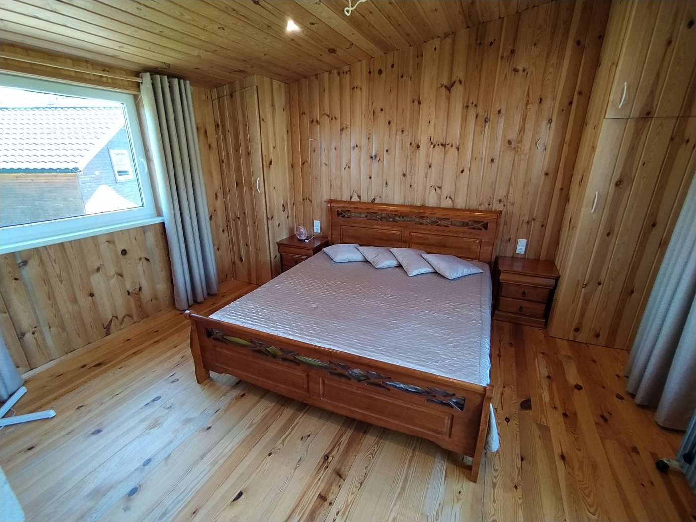 Pirmame aukšte rasite didelę bendrą poilsio zoną su televizoriumi, stalo žaidimais, barą, virtuvę su visais reikiamais įrankiais ir įranga, tad galėsite tiek pusryčius, tiek pietus ar vakarienę pasigaminti patys. Antrame aukšte yra įrengti du miegamieji kambariai su dvigulėmis lovomis, švari patalinė, rankšluosčiai. Privatūs WC bei dušo kambariai su būtinosiomis higienos priemonėmis.