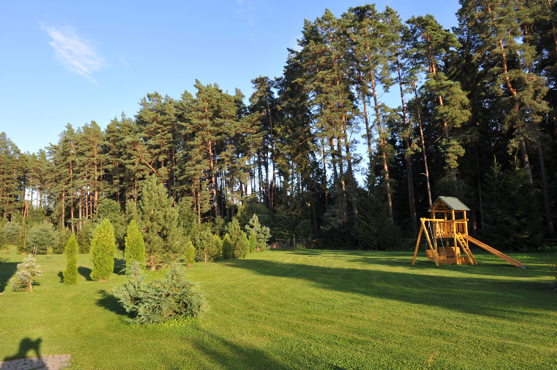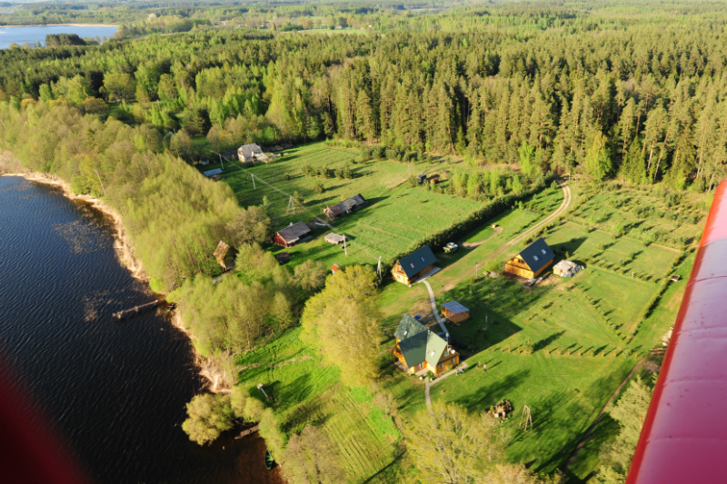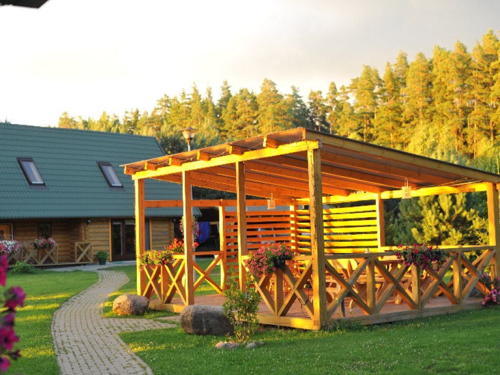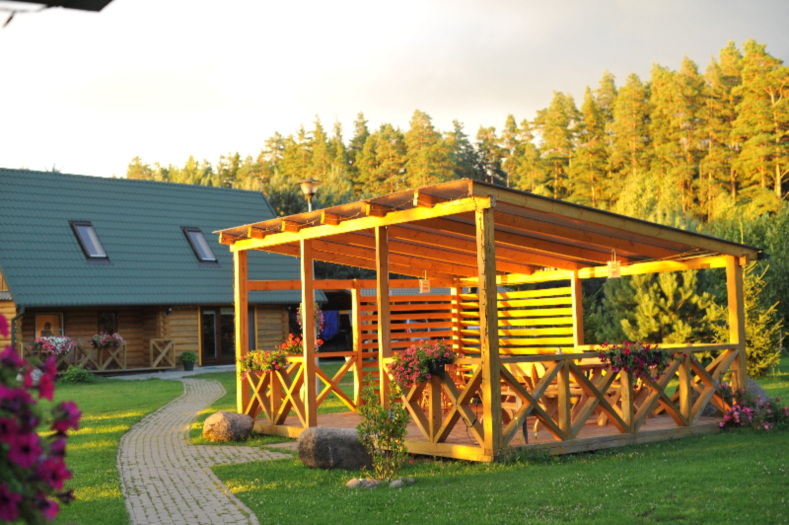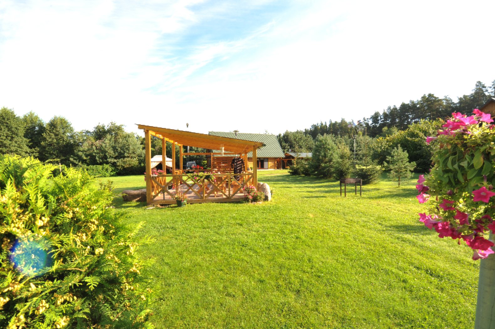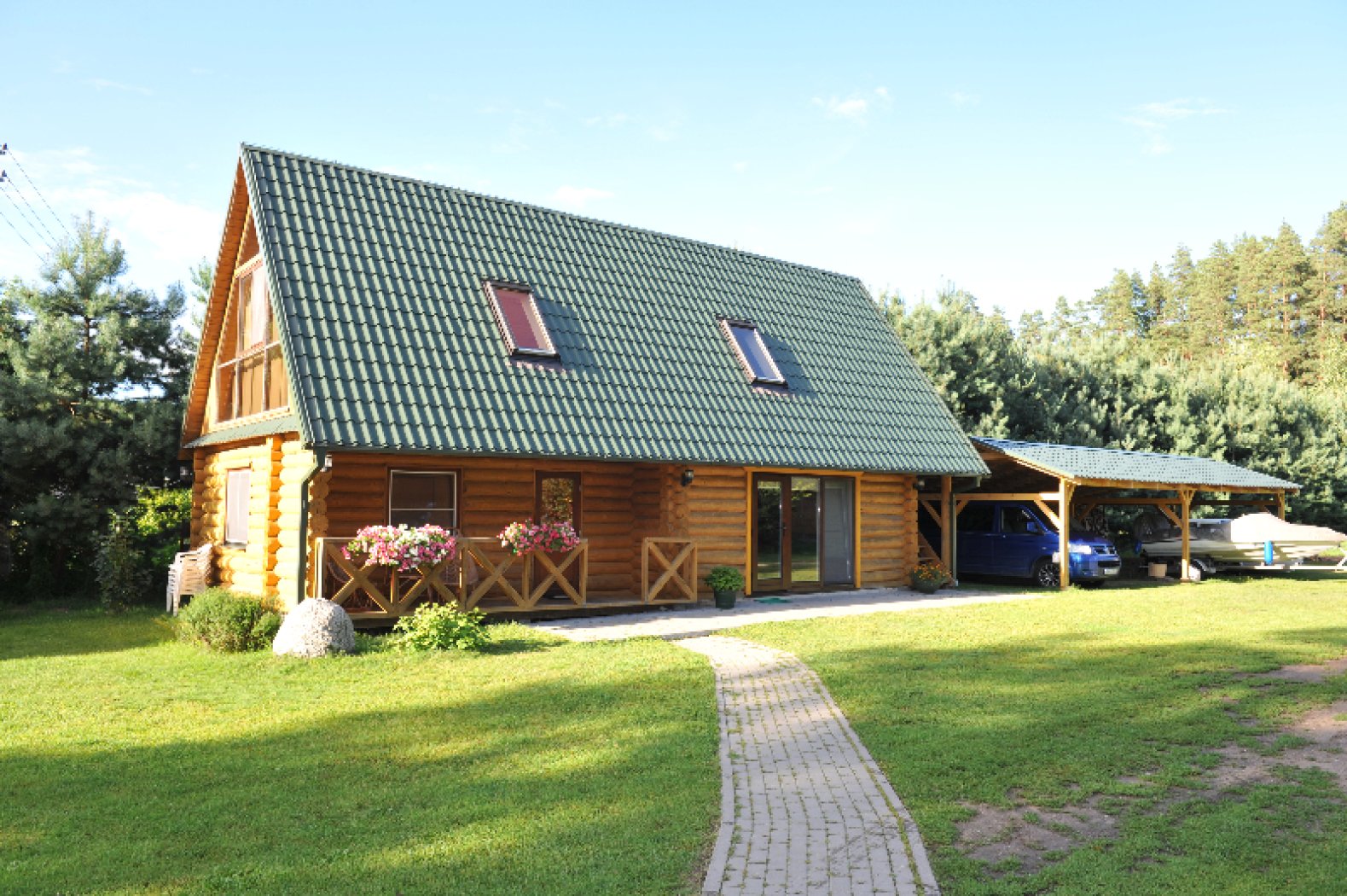 Apsistoti galite rąstiniame name su trimis apartamentais. Jaukus rąstinis namas pritaikytas šeimų poilsiui ar draugų susitikimams. Ilsėtis galėsite kambariuose, turinčiuose atskirus įėjimus iš lauko. Tad, atvykus kelioms šeimoms, turėsite daugiau privatumo. Puikios sąlygos nakvynei! Kambariuose įrengtos virtuvėlės kampai su inventoriumi, valgomasis, WC bei dušo kabina, oro kondicionierius, bevielis internetas visoje sodyboje. Pirtis įrengta su didele įstiklinta terasa, kurioje galima ramiai pavakaroti. Pirčių fanai galės pasimėgauti garine pirtimi, o jei karšis liete liesis – ežere atvėst galėsit.