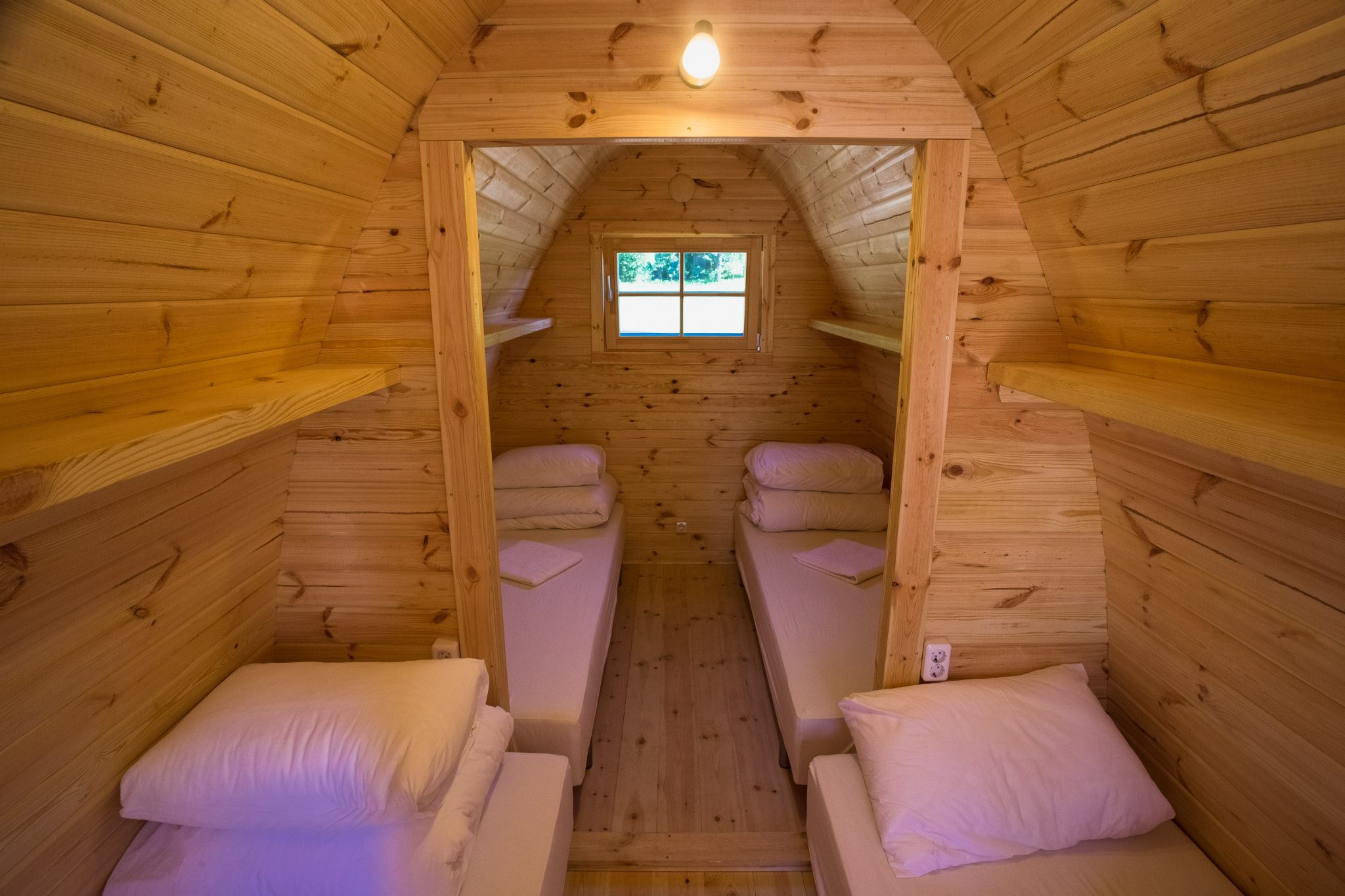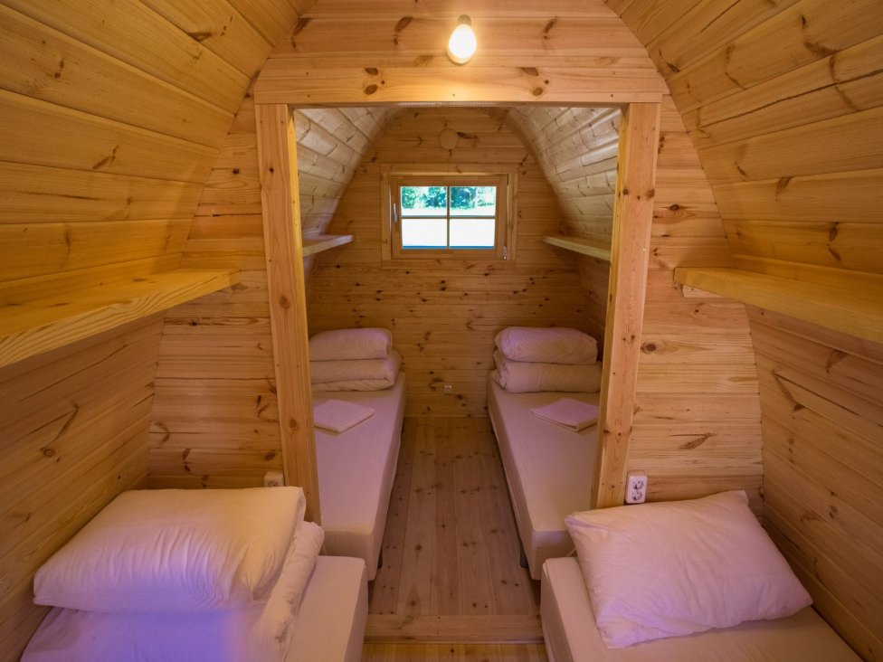 Jaukūs ir išskirtiniai keturviečiai gyvenamieji Camping Pod nameliai ant ežero kranto, Zaraso ežero Didžiojoje saloje!
